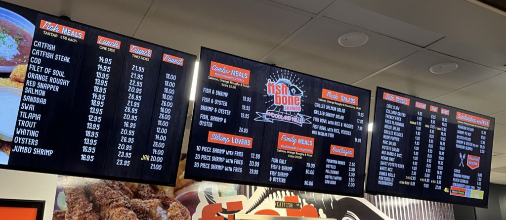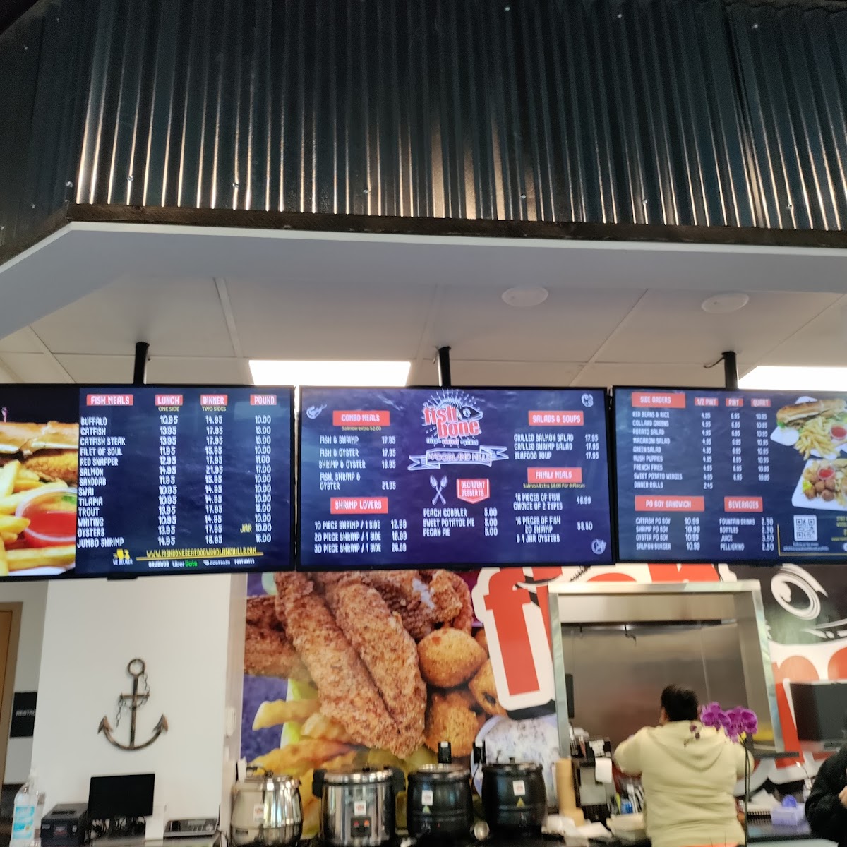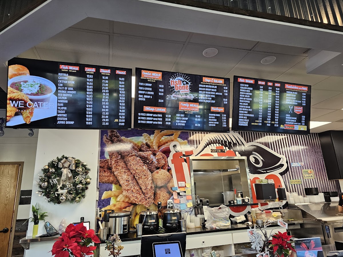 The menu at Fishbone Seafood Woodland Hills offers a diverse selection that caters to a variety of tastes. For family-style meals, options include Family Fish Only, Family Fish & Shrimp, and Family Fish, Shrimp & Oyster, ensuring everyone gets a hearty feast. Fish lovers will enjoy the Fish Meals for both dinner and lunch, featuring dishes like Tilapia, Swai, Oysters (8), Filet of Sole, Red Snapper, and Cod Lunch. The Fish Meals - By The Pound section includes Cod, Jumbo Shrimp, Catfish, Catfish Steak, and Sanddab, perfect for those who prefer customized portions. Sandwich enthusiasts can indulge in Shrimp & Oyster Po Boy W/Fries, Fishbone Po Boy W/Fries, or the Fishbone Sliders (4). For shrimp lovers, the 10 Piece Fried Shrimp W/French Fries, 20 Piece Fried Shrimp W/French Fries, and 30 Piece Fried Shrimp W/French Fries are sure to satisfy any craving. The side dishes, like Red Beans & Rice, Fried Portobello Mushrooms, Collard Greens, and Sweet Potato Fries, perfectly complement the main meals. For a light and refreshing touch, try the Grilled Shrimp Salad, Grilled Veggie Boat, or Grilled Salmon Salad. Desserts like Banana Pudding, Peach Cobbler, Lemon Cake, and Carrot Cake round off the meal with a sweet finish. The beverage selection includes Pellegrino, bottled water, and a variety of soda cans. With its extensive and delicious menu, Fishbone Seafood ensures there’s something for everyone to enjoy.